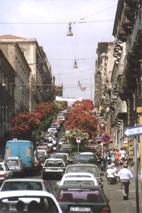 Sulle pendici meridionali dell'Etna si trova Catania che si estende fino alla costa del Mar Ionio. Catania è dopo Palermo la più grande città della regione Sicilia. Questa pulsanta città portuaria vive all'ombra dell'Etna. Dopo l'eruzione del vulcano del 1669 e il catastrofale terremoto del 1693 Catania fu quasi completamente distrutta. La città fu recostruita su progetto dell'architetto Giovanni Battista Vaccarini (1702-1768). Nacque così una città con chiese e palazzi in stile barocco del XVIII secolo, che si possono ammirare ancora oggi.
